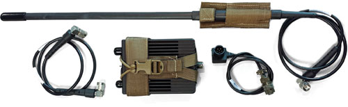 The AR-20KT is the lightest, most compact 20-watt booster amplifier kit for military transceivers. The entire kit weighs approximately 2.5 lbs. But it’s a real heavyweight when it comes to performance, durability, and ease of use. It covers the 30 – 512 MHz frequency and supports legacy and all emerging networking waveforms such as WNW, IW, ANW2 and SRW. It is compatible with all 5-watt tactical radios such as Harris AN/PRC-152, Thales MBITR, AN/PRC-148 plus others. The KMW1031 can be powered by a single battery or a 12 or 24 volt vehicle system. The portable, waterproof kit includes everything needed to boost radio signals: amplifier, antenna, RF cables, battery cable and tactical vest pouches for both the amp and antenna.
