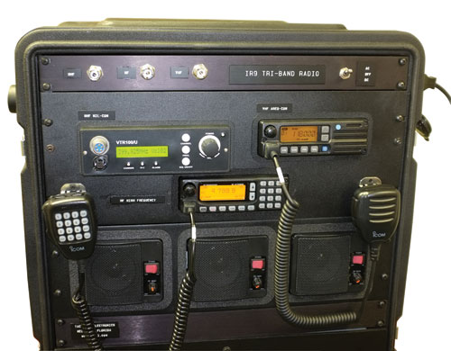 Tactical Electronics Tri-Band Radio provides HF (long distance communication), VHF-AM (aeronautical band communication), and UHF-AM (military aeronautical band) in one multi-functional unit. The Tri-Band unit is self-contained in one ruggedized enclosure with multiple power sources. The Tri-Band radio provides essential radio communications capability from remote locations worldwide
