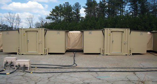 E2S2 is an energy efficient, light weight, rapidly deployable shelter. It is a robust structure that meets ISO standards and has 9 high stacking capability. Panel strength and durability are the result of SIP construction utilizing closed cell polyurethane foam, polypropylene honey comb core and fiberglass skin. Deployed units have an insulated R-Value of 15. E2S2 base structure can be fully integrated with electrical, plumbing, communication, security and climate control features based on customer requirements. Designed and produced in the USA.