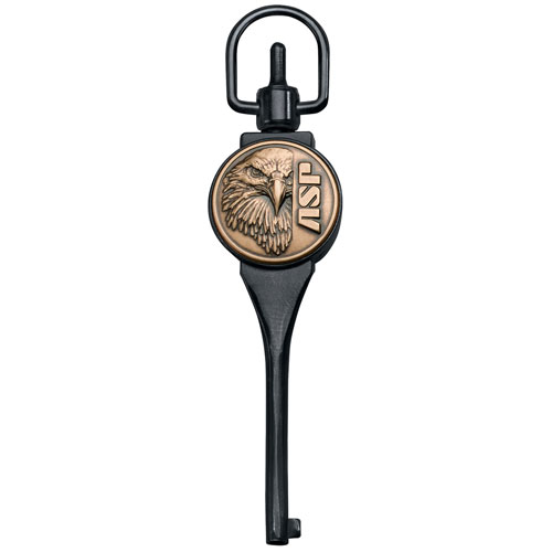 ASP Handcuff Keys are designed to withstand the rigors of long term duty use. Conventional keys are stamped from mild steel. They often break or twist off in a handcuff. These “key jammed” restraints create civil liability and must be destroyed to cut them from the subject’s wrist. Each ASP Key is hammer forged, then precision machined from stainless steel. The keys are heat treated for strength, then finished in one of five attractive coatings. A hardcoat lacquer is baked on for added protection. The unique ASP BackSet feature allows rapid location of the handcuff keyway. Logo Keys feature distinctive Prestige insignias, full color State Seals or custom agency logos.