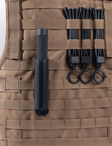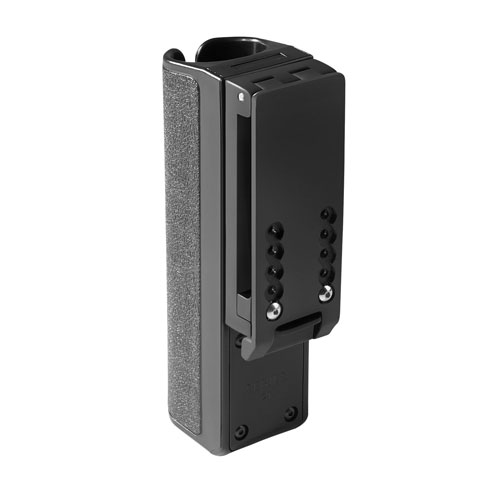 The SideBreak Series is the foundation of the ASP gallery of baton scabbards. The rotating SideBreak Slide swivels to 12 distinct positions or may be locked in place on the duty belt. A retracted or expanded baton may be rapidly presented, yet is securely retained during dynamic confrontations. Expanded batons may be presented out the side of the carrier.