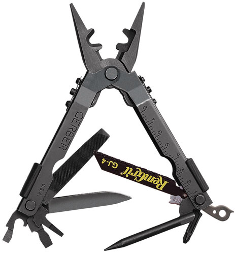 Designed for the combat engineer, this tool features a non-relective black finsh, a blasting cap crimper, a punch for C4 explosives and a premium RemGrit blade capable of severing steel cable. Patented Saf. T. Plus locking system assures tool components stay in place while in use. Berry Compliant sheath included.