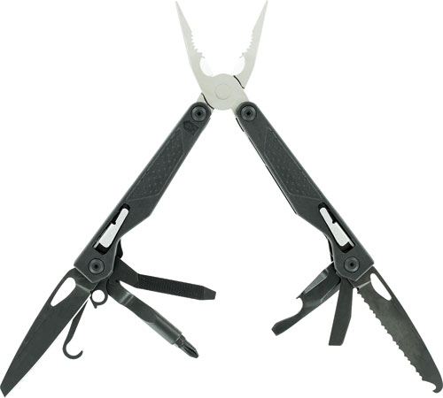 Maintenance, Repairs, and Operations: Gerber built the new MP1 Military MRO Multi-Tool for these explicit uses. This heavy duty tool’s forged jaws can withstand rigorous torque and compression. It contains full-sized serrated and fine edge blades for tough cutting and slicing duty. The cotter pin hook allows users to pull cotter pins from vehicles without having to use pliers. The magnetic bit driver accepts standard size bits. The file, pry bar, bottle opener, and utility blade all provide unique functionality for this purpose-built tool. The MP1 Military MRO Multi-Tool comes with a MOLLE compatible Tan 499 nylon sheath and a 12-piece bit set. This tool is proudly built in Portland, OR.